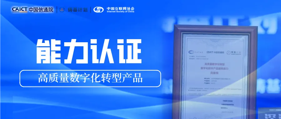 此次「高质量数字化转型产品服务能力完备级」测评证书的颁发,是对公海jcjc5500智能在数字化转型领域服务能力的一次全面检验和认可。测评过程严格遵循了信通院制定的标准,涵盖了产品功能、技术能力、服务支持、业务流程等多个方面。公海jcjc5500智能可以在众多参评企业中脱颖而出,获得完备级认证,充分证明了其在企业数字化转型服务领域的综合实力和领先地位。