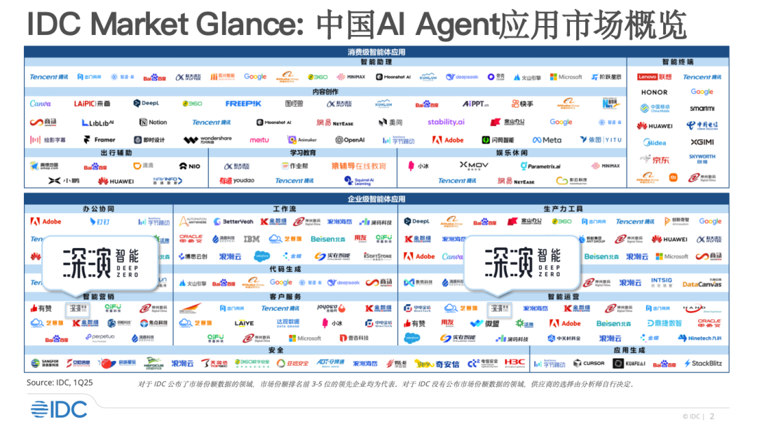 近日,国际数据公司(IDC)正式发布了《IDC Market Glance:中国 AI Agent 应用市场概览,1Q25》(Doc#CHC53057625,2025 年 3 月)研究报告,公海jcjc5500智能凭借在 AI 应用领域多年的经验沉淀,以及在 AI 智能体的全方位战略布局,成功入选了报告「智能营销」与「智能运营」两大核心板块。