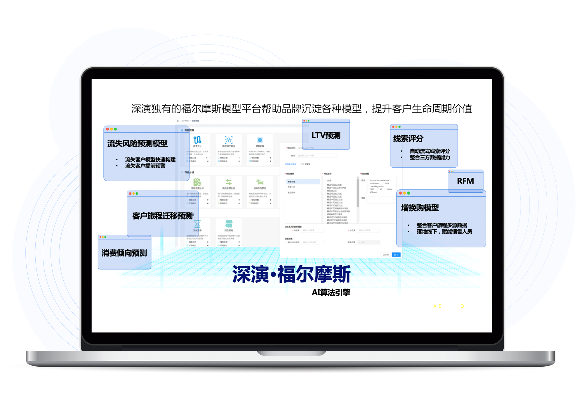 福尔摩斯AI是公海jcjc5500智能自主研发的AI算法模型平台,内嵌广告和用户运营两大模型体系,为公海jcjc5500智能营销决策云提供底层能力支撑,提升客户全生命周期价值